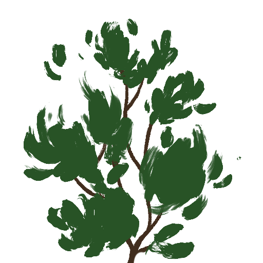 The shrubs were assembled from generated branches and re-used leaves. I recalculated the normals to make the shading more natural.